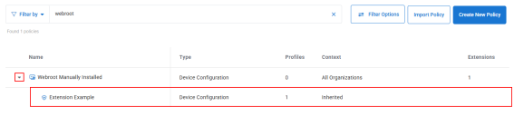- Once created, the extension will be nested below the policy on the Policies page when expanded.