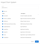 Click Import from System to select a device and import one or more services from the services available on that device. Once a device has been selected and the services are listed, select the check box next to any services you want to add to the profile.
