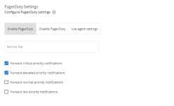Enter your service key for PagerDuty, and select which notification priorities you wish to be forwarded to PagerDuty.