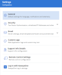 The Settings page allows administrators to configure general settings for the VSA 10 account.