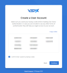 - Each VSA 10 user account is preloaded with 10 unique active backup codes that can be used to execute 2FA in the event that trusted mobile device verification or a one-time passcode via an authenticator app is unavailable. The backup codes are provided at this step. Be sure to save the 10 account backup codes in a secure, accessible digital location. Once the backup codes are saved, select the I confirm that I saved my backup codes check box. For more information, refer to Backup codes.