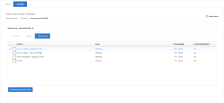Click the Devices tab to view a list of the user's registered devices/browsers. For details about how devices are registered, refer to Managing user account device access. An administrator has the option to delete any registered devices/browsers of another user. Select the check mark next to the device/browser you wish to delete and click Remove Selected Device. The user will be required to re-register that device/browser.