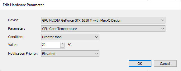 NAVIGATION VSA 10 Agent > Notifications > Hardware > Send a notification when one of the following conditions is met > Add