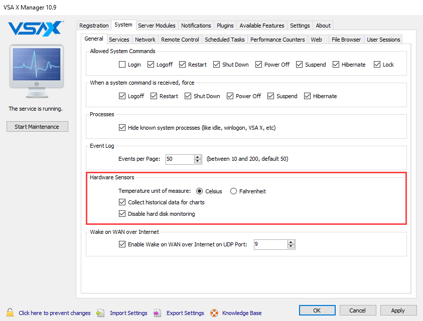 It’s a good idea to monitor your hardware’s sensor and temperatures, and VSA 10 helps you keep those details in check.