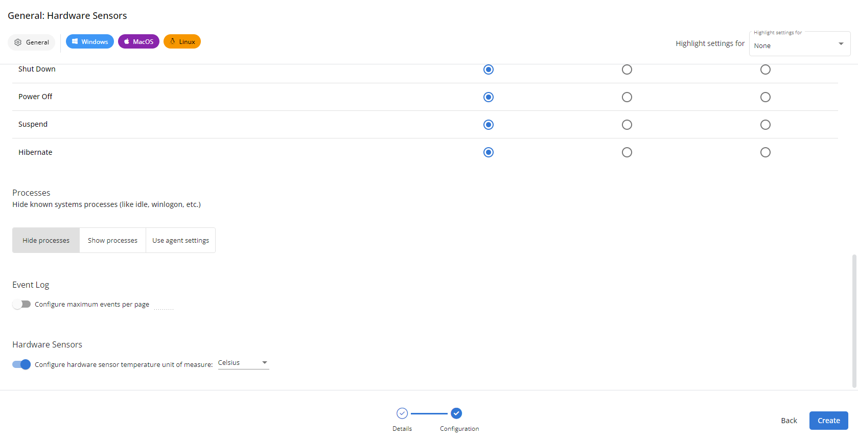 NAVIGATION VSA 10 Agent > Profiles > System > General > Hardware Sensors