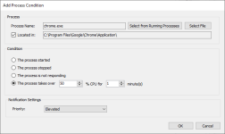 NAVIGATION VSA 10 Agent > Notifications > Processes > Send a notification when one of these conditions are met > Add