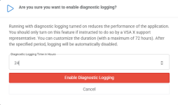 - In the popup that appears, set how long you want to turn on the logging for (up to 72 hours) and click Enable Diagnostic Logging.