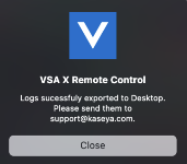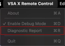 - On the source macOS machine, open the VSA X Remote Control app, and in the app menu, click Diagnostic Report to create a log archive on the desktop.