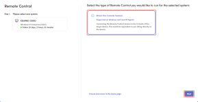 - On the Remote Control page, select the device you want to connect to, and click Next.
