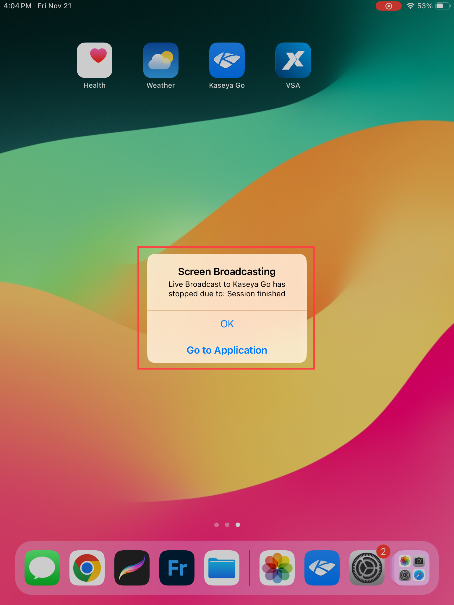 To end the Remote View session from the remote iOS device, first have the end user open the Kaseya Go app.