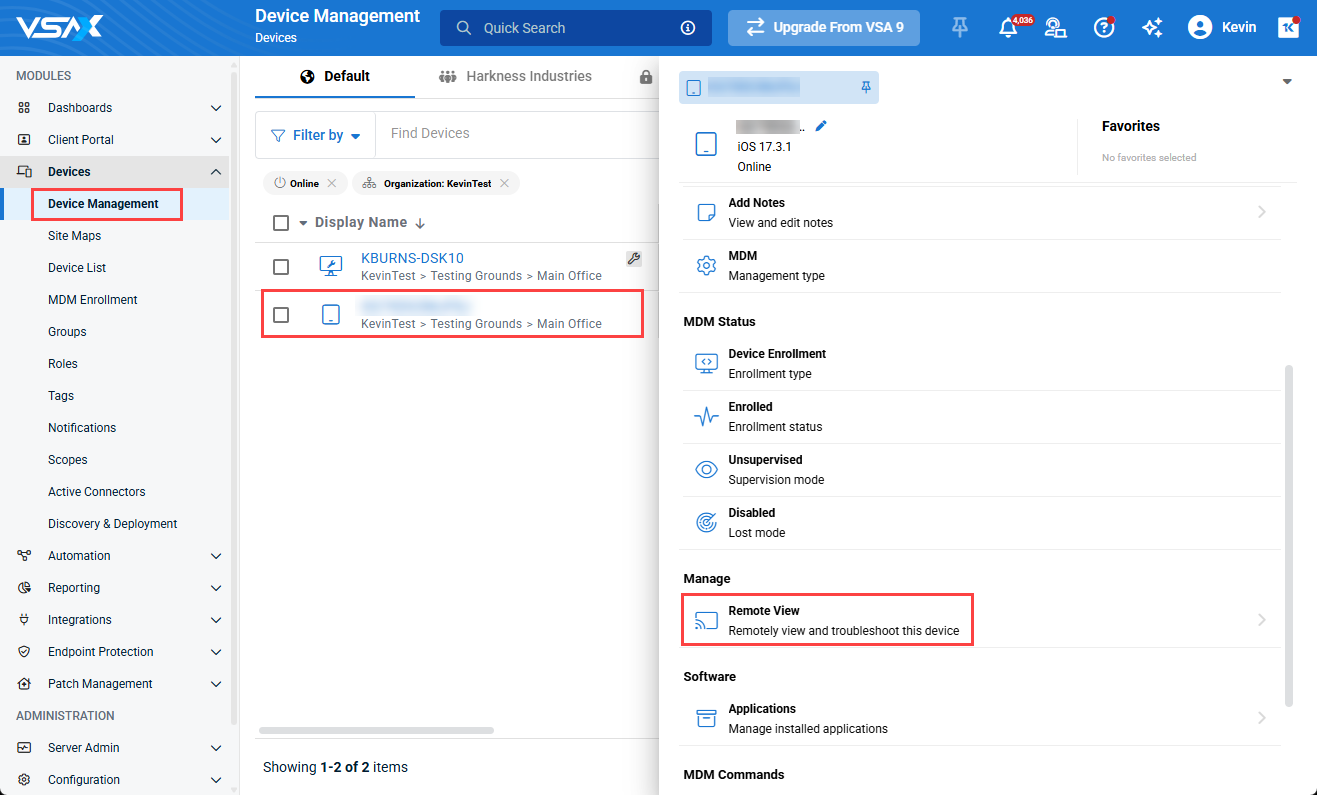 In VSA 10, you can utilize Remote View to view the screen of MDM enrolled iOS devices, streamlining troubleshooting and support.
