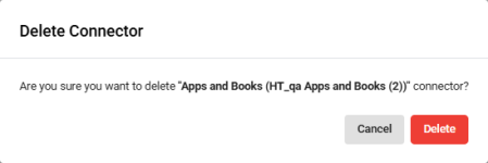 - In the confirmation pop-up, click select Delete to confirm deletion of the connector.