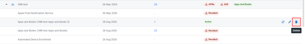 Expiration date | Surfaces the date on which the certificate for the MDM connector expires. Filter by connectors that have expired ![]() ![]() |
